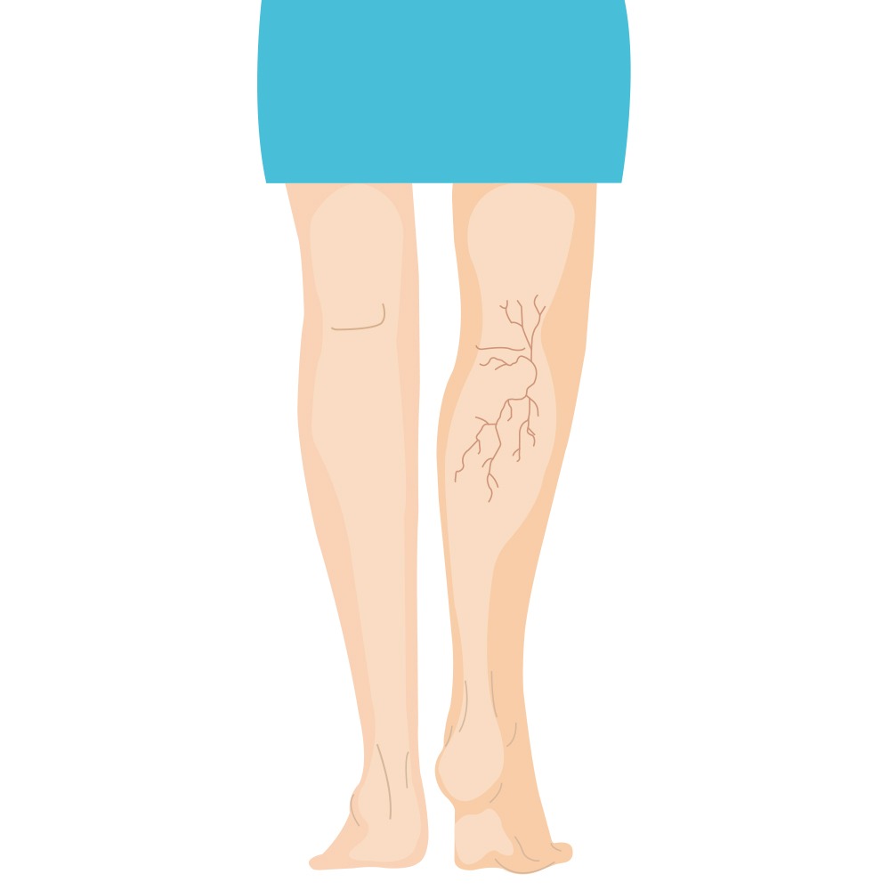 Genellikle diz arkası ve ayak bileği çevresinde meydana gelir. Hafif kabarık ve mavi renklidir.
